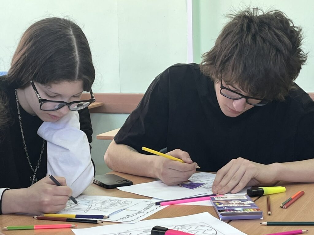 Ребята создавали яркие работы с традиционными символами: